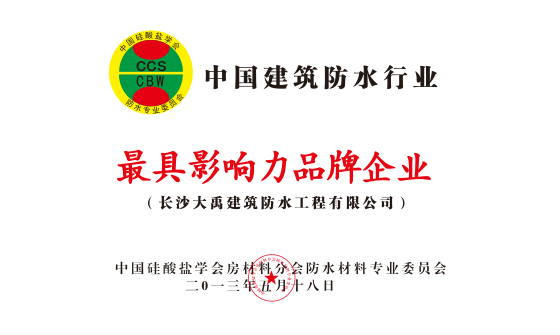 榮獲中國建筑防水行業(yè)最具影響力品牌企業(yè)稱號;湖南省建筑防水協(xié)會副會長單位